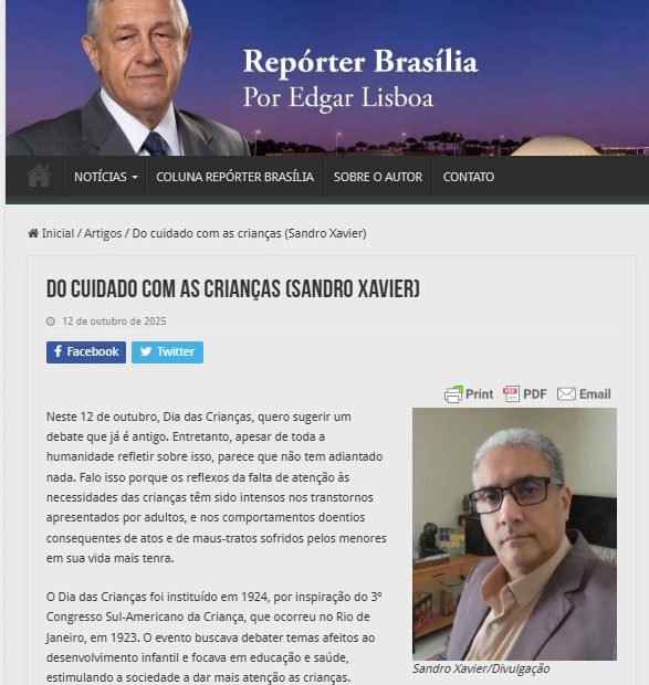 Por ocasião do Dia das Crianças de 2025, foi publicada no Portal Repórter Brasília a coluna “Do cuidado com as crianças”, que trata, um pouco, das consequências dos diversos tipos de abuso a crianças e adolescentes na vida adulta, o que, certamente, afeta toda a sociedade.